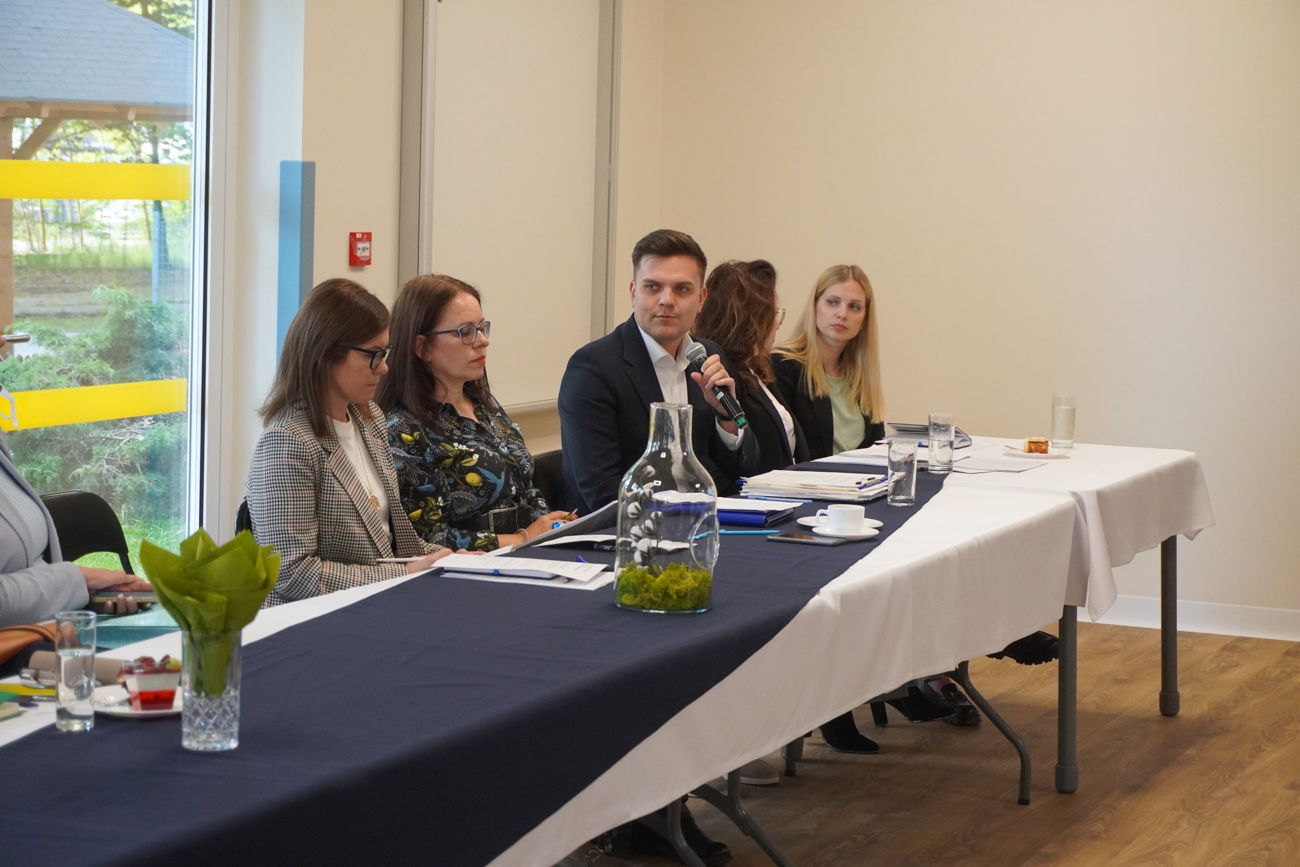 Wicestarosta wraz z gośmi słucha dyskusji podczas debaty
