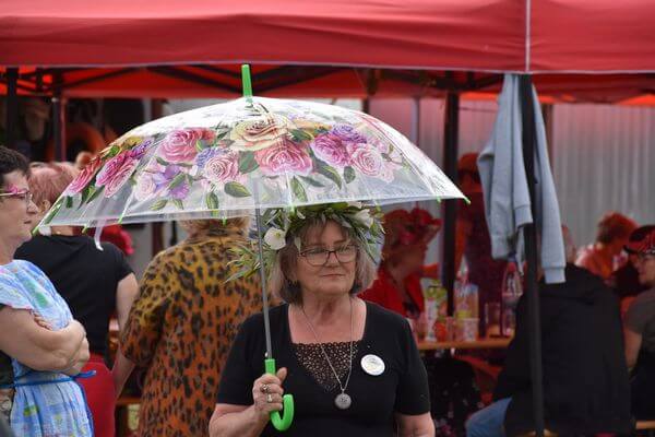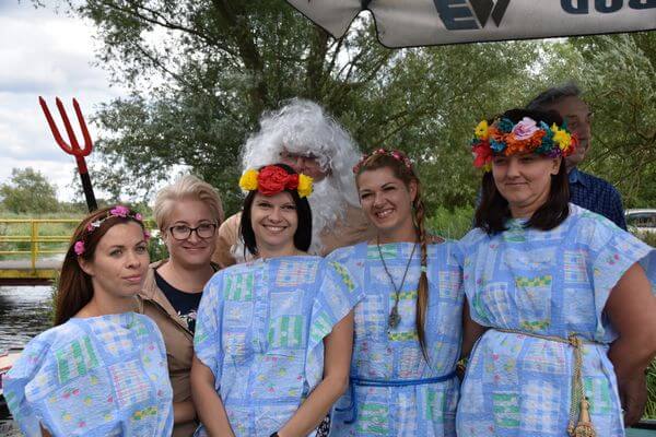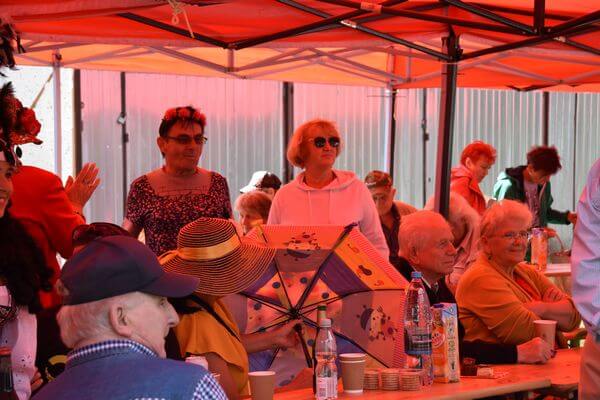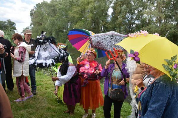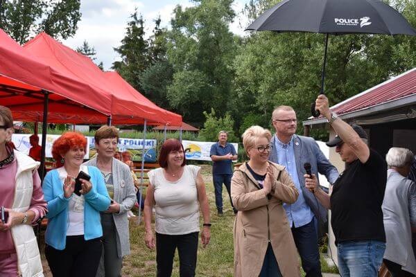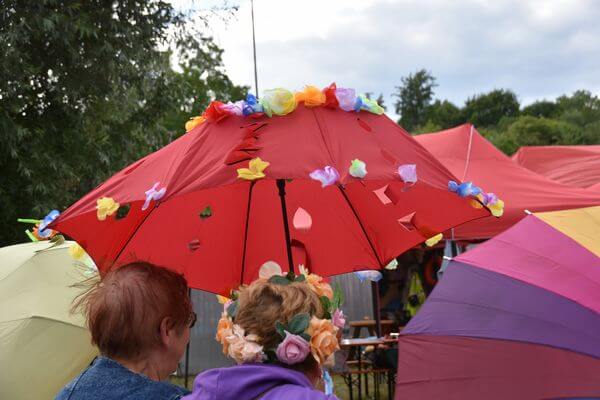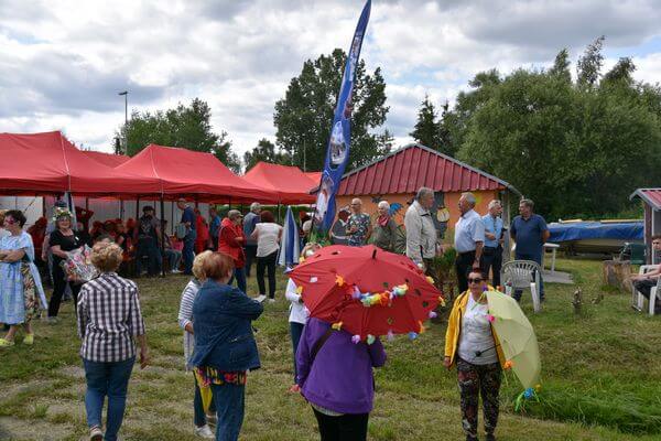 Uczestnicy kolorowego pikniku integracyjnego pod nazwą Otwarcie Parasola 2022 odbywającego się na stanicy wodnej w Policach