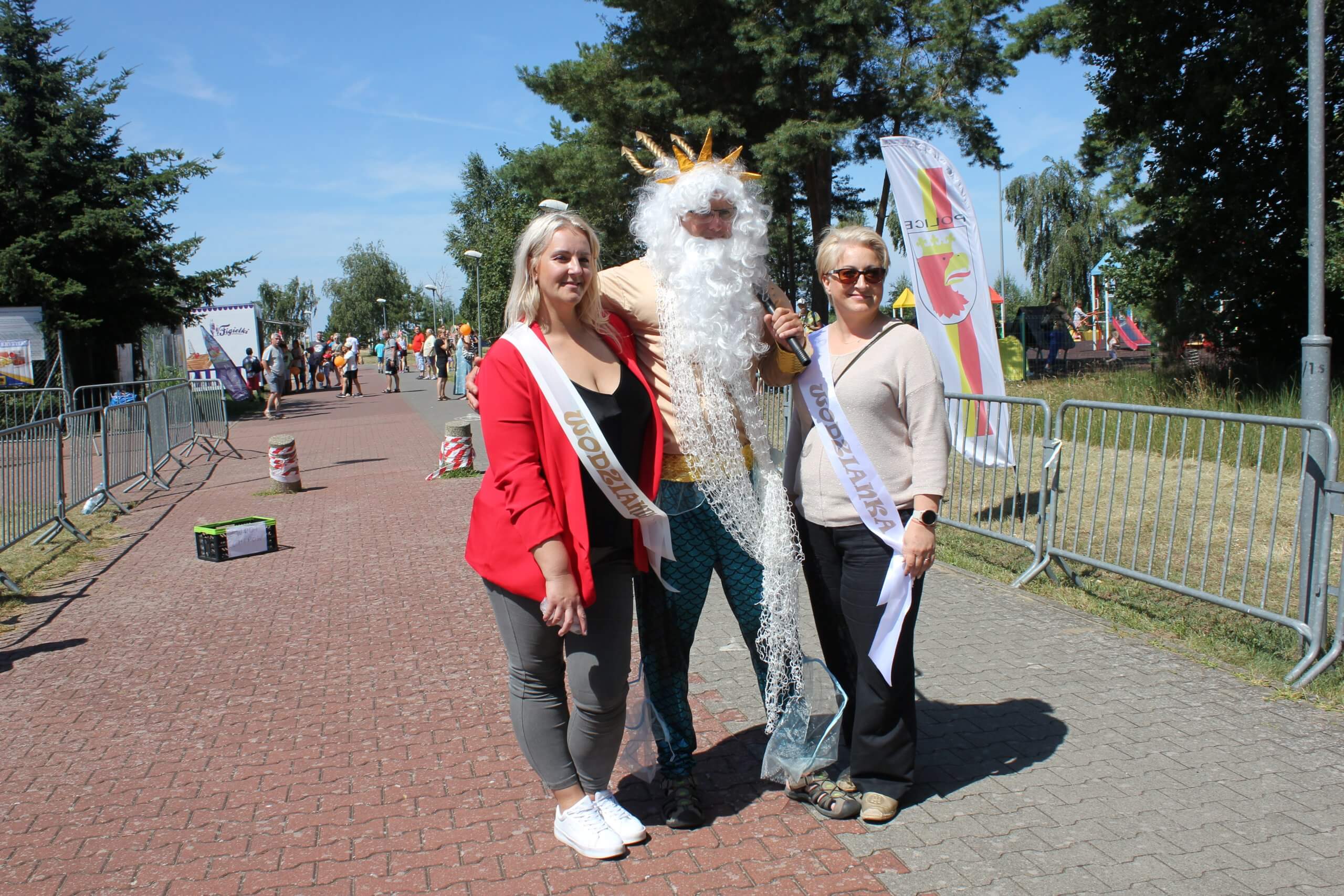 Wicestarosta z Sołtysem Trzebieży pozują do zdjęcia z Neptunem